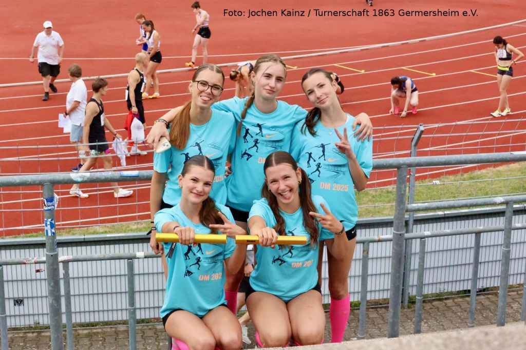 Ebenfalls stark präsentierte sich die 4×100-Meter-Staffel der StG Rhein-Pfalz mit Mia Vogt (Germersheim), Greta Kuhn (Germersheim), Lana Ruhnau (Germersheim) und Amelie Pap (Speyer). Auch sie feierten in Ulm ihre DM-Premiere – und meisterten diese mit Bravour. In einem schnellen Lauf kam das Quartett nahe an die persönliche Bestzeit heran. Eine souveräne Vorstellung, die Lust auf mehr macht.